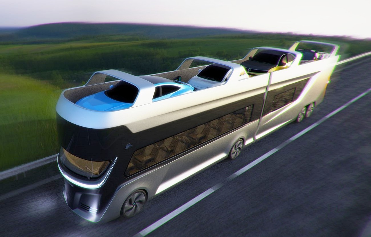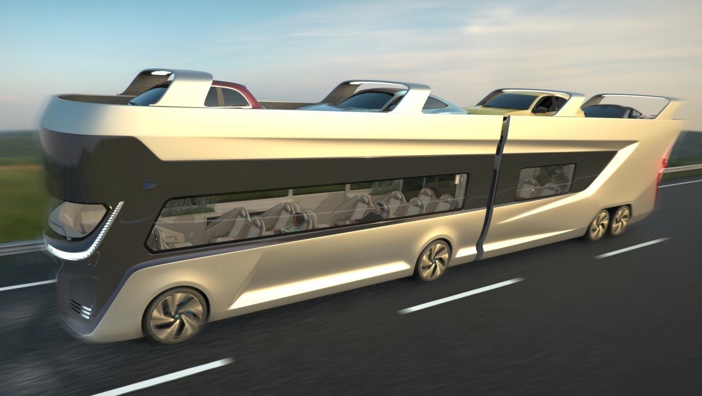French startup Symone is developing an unusual car transporter bus that will allow long distance travel on motorways. Car drivers on such trips will save energy by relaxing in the first class cabin, and at the same time the level of harmful emissions into the atmosphere will be reduced.