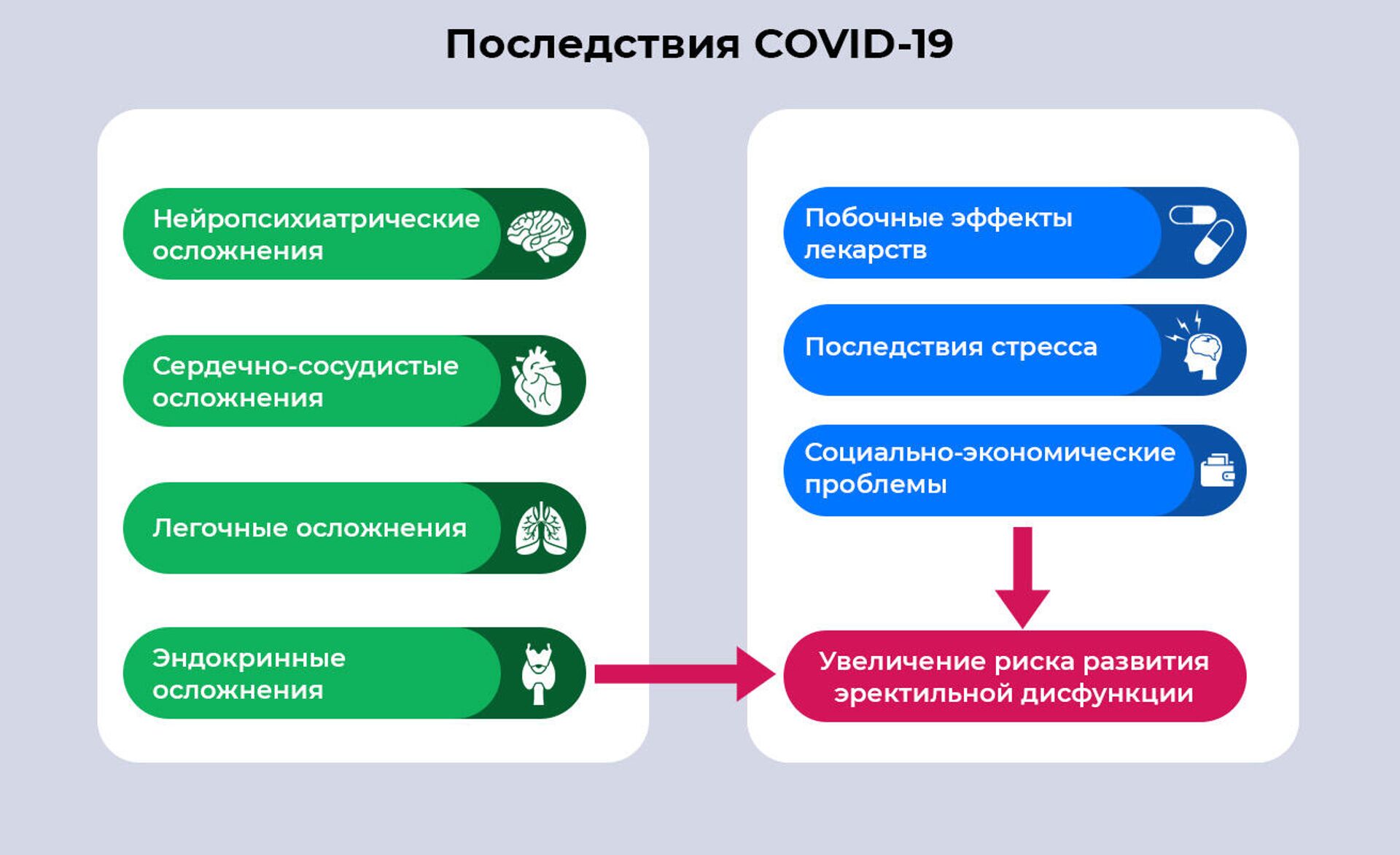 The authors concluded that erectile dysfunction in COVID-19 is associated with a whole range of physiological and psychological factors. Experts believe that almost any respiratory, neurological, cardiovascular or endocrine complication caused by coronavirus can negatively affect male sexual health.