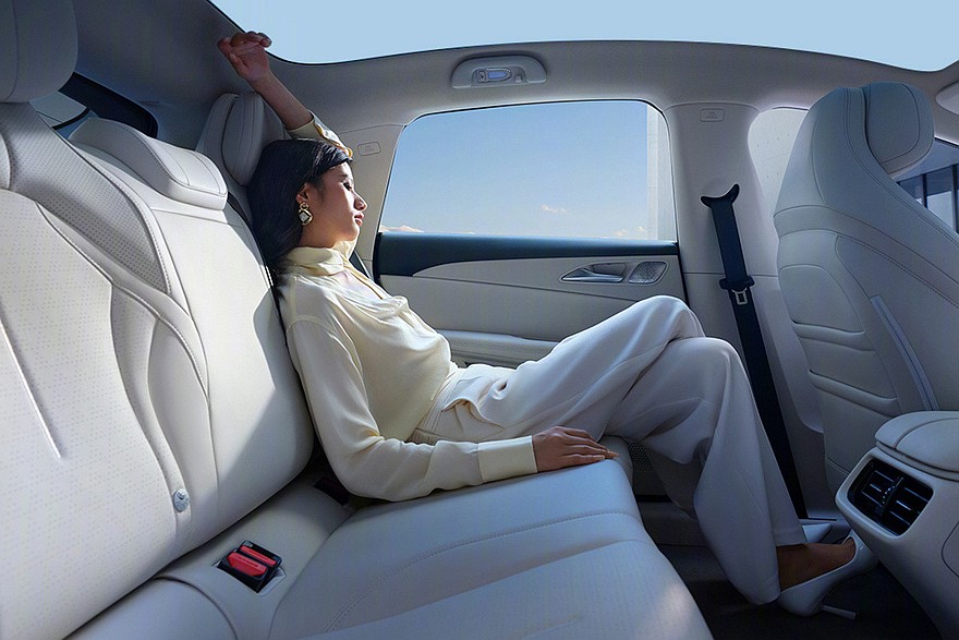 Пятидверка получила дизайн, уже ставший привычным для современных «китайцев». Лифтбек имеет клыкастые фары, плавный «нос», задние фонари, выполненные в виде единой пластины, безрамочные двери с выдвижными ручками и стеклянную крышу. В салоне — отдельные экраны для панели приборов и мультимедийной системы, двухэтажный центральный тоннель и двухспицевое рулевое колесо.