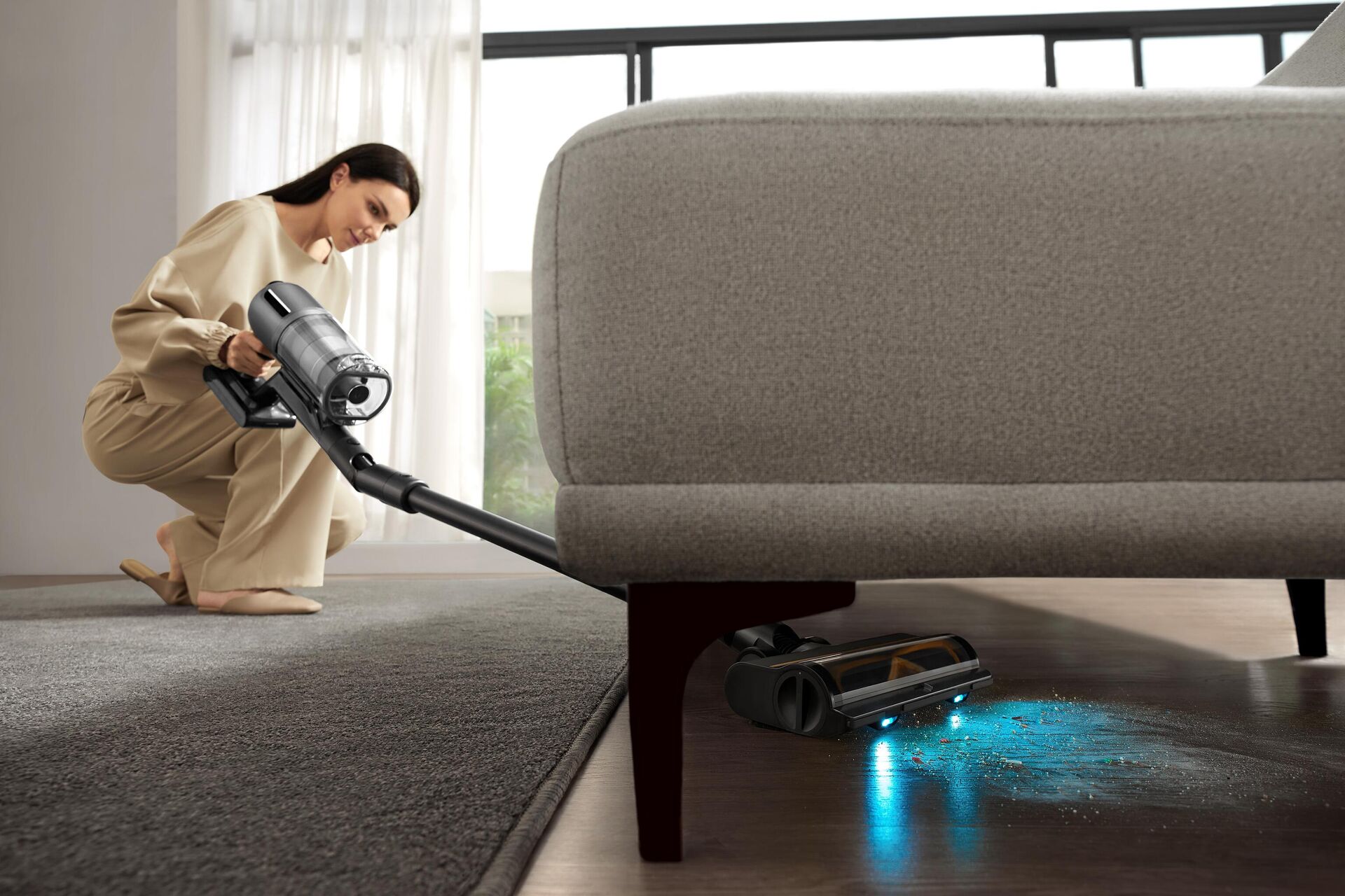 Для еще более тщательной и эффективной уборки Dreame Z30 оснащен двойной подсветкой щеток, которая делает видимой даже самую мелкую пыль и освещает темные участки помещения. Эта модель также предлагает интеллектуальную систему реагирования, которая обнаруживает различные типы грязи и автоматически изменяет мощность всасывания, помогая при этом контролировать процесс уборки, проецируя всю информацию на ЖК-дисплей.