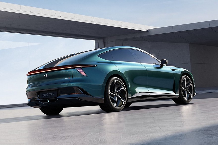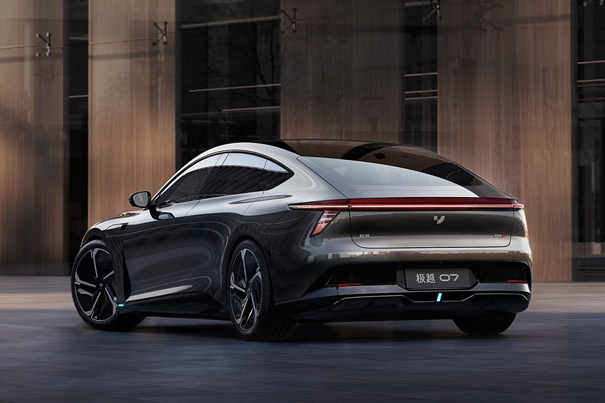 Jiyue 07 имеет Т-образную головную оптику с пиксельными секциями, стеклянную крышу и безрамочные двери. При этом на дверях нет ручек — они открываются миниатюрными кнопками. На крышке багажника есть выдвижной спойлер (но у базового лифтбека его нет). Модель доступна с 19- или 20-дюймовыми дисками.