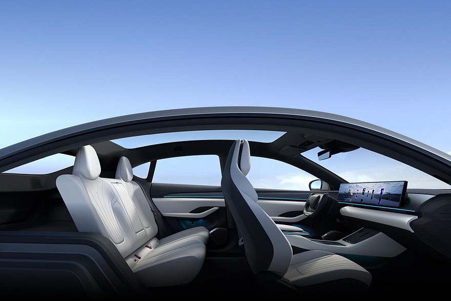 Длина «семерки» составляет 4953 мм, ширина — 1989 мм, высота — 1480 мм. То есть Jiyue 07 недалеко ушёл от лифтбека Mazda EZ-6. Хотя по размеру колёсной базы «китаец» превзошёл новую Mazda: 3013 против 2895 мм. Минимальный объём багажника Jiyue 07 марка не озвучила, но известна цифра при сложенном втором ряде сидений — 1573 литра.