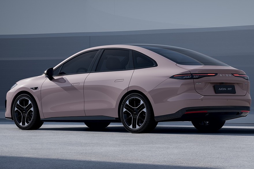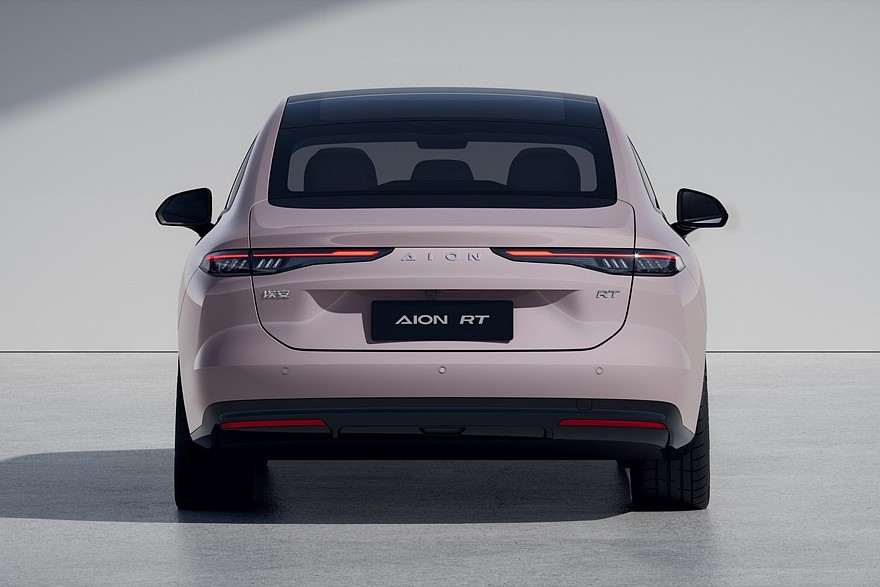 Четырехдверка получила «гладкий» дизайн экстерьера. Модель имеет округлые фары и плавный «нос». Седану также достались уже стандартные для китайского автопрома выдвижные дверные ручки. Длина Aion RT составляет 4865 мм, ширина — 1875 мм, высота — 1520 мм, колесная база — 2775 мм. Объем багажника на сайте модели пока не указан. Местные СМИ пишут, что объем грузового отсека составляет 540 литров.