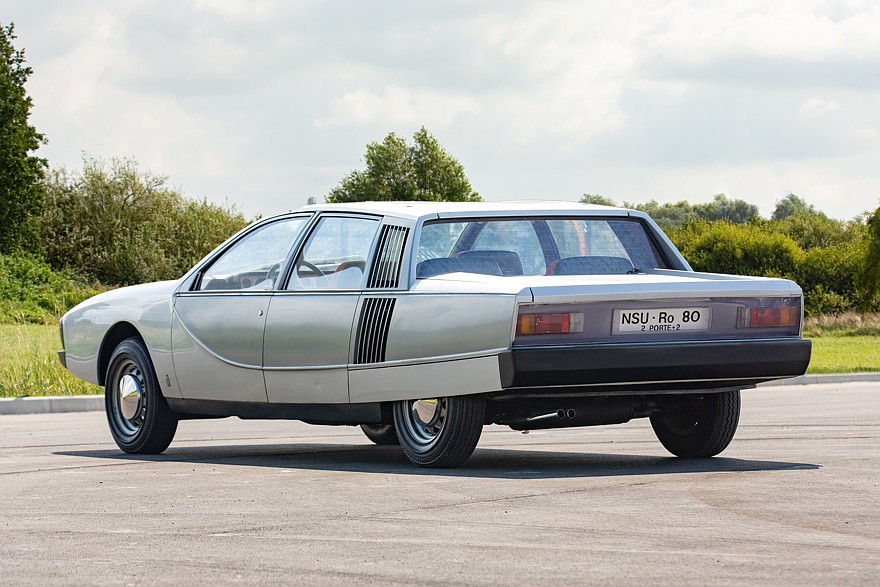 Историю серийного NSU Ro 80, выпускавшегося в Германии с 1967 по 1977 год и получившего в 1968 году почетное звание «Европейский автомобиль года», мы рассказали в отдельной большой статье. Мало кто знает, что у седана NSU Ro 80, оснащенного роторно-поршневым двигателем и другими техническими новшествами, мог быть преемник; его прототип был построен итальянской компанией Pininfarina и представлен на Туринском автосалоне в 1971 году, где получил множество восторженных отзывов. Увы, «второй» NSU Ro 80 оказался еще более революционным и необычным, чем «первый», и не получил добро на разработку от руководства концерна Volkswagen, в состав которого NSU вошла в 1969 году и была объединена с Audi. А вот прототип NSU Ro 80 2 Porte + 2 образца 1971 года, к счастью, не был уничтожен и сохранился до наших дней, 26 октября его новым владельцем может стать любой желающий.