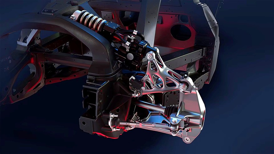 Двигатель V6 сопряжен с 8-ступенчатой ​​автоматической коробкой передач типа DCT (с двумя сцеплениями) и вспомогательным электродвигателем. Этот электродвигатель работает в основном в режиме рекуперации при торможении, вырабатывая до 95 л.с. мощности, но может также помогать двигателю внутреннего сгорания при разгоне, в этом случае пиковая мощность электродвигателя достигает 81 л.с. Весь задний силовой агрегат наклонен вперед на 1,3 градуса для получения оптимального профиля развитого диффузора в днище. s://kolesa-uploads.ru/-/6eb44e1d-b211-45c5-8899-0055980a88a8/2-1.jpg» alt=»»> 1/3 2/3 3/3