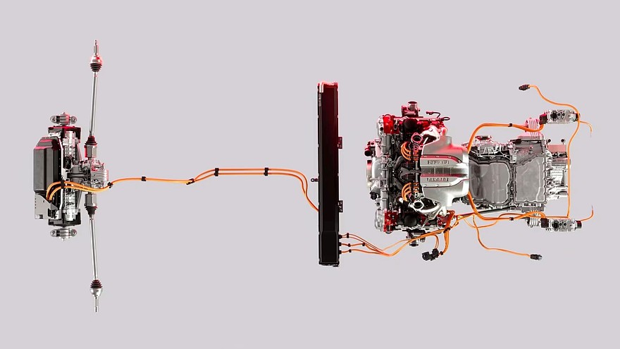 Компания Ferrari представила свой долгожданный новый флагманский суперкар с 860-вольтовой гибридной силовой установкой, включающей 3,0-литровый бензиновый двигатель V6 с двойным турбонаддувом и три электромотора. Максимальная совокупная мощность силового агрегата составляет 1200 л. с., что означает, что F80 в настоящее время является самой мощной серийной Ferrari.