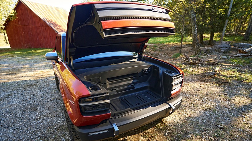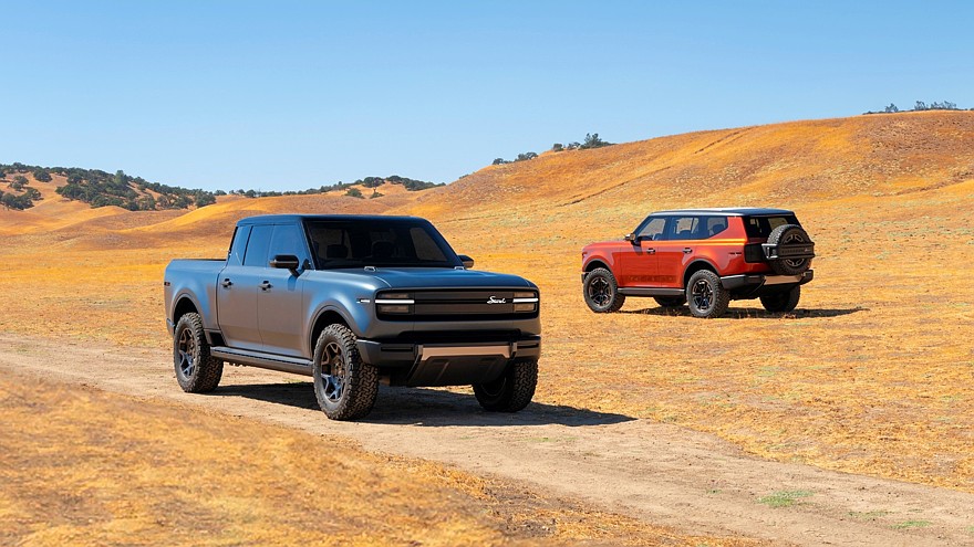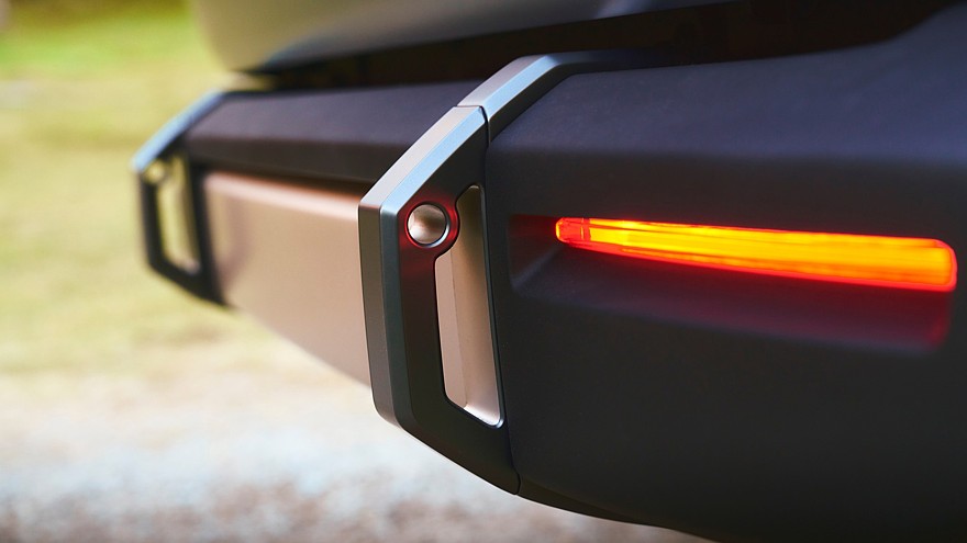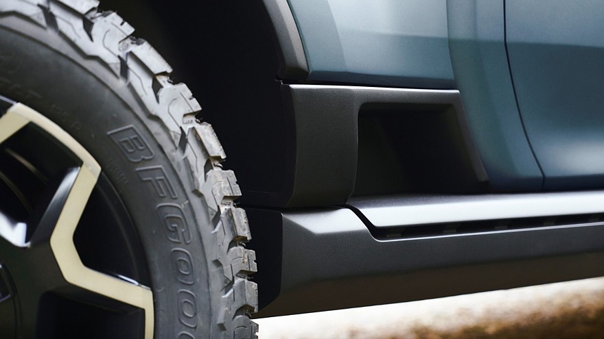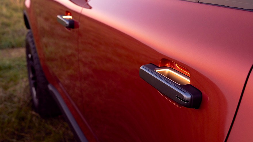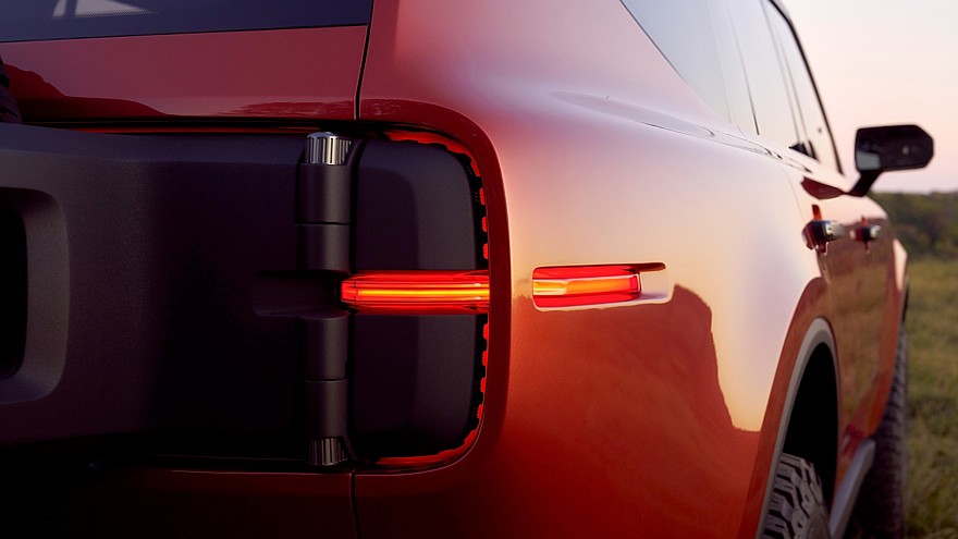 На фотографиях представлены автомобили с 35-дюймовыми шинами, но будут и более простые версии — с 33-дюймовыми шинами. У внедорожника запасное колесо в любом случае висит за двухстворчатой дверью багажника. У пикапа запаска размером 33 дюйма, которая помещается в задний фонарь под грузовой платформой, а вот 35-дюймовую придется возить в кузове на специальном креплении. Для пикапа, как «рабочей лошадки», предусмотрено целых три розетки для питания внешних устройств — две на 120 В и одна на 240 В. Перед задними колесными арками пикапа имеются утопленные ступеньки для удобного доступа в кузов. Электрические версии пикапа и внедорожника имеют дополнительный багажник с подпольным полом спереди, для пикапа такой багажник особенно актуален.