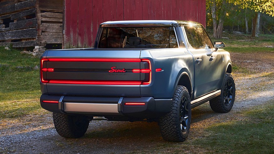 Новые Scout имеют независимую переднюю подвеску с отключаемым стабилизатором поперечной устойчивости, а вот сзади установлен неразрезной мост. 800-вольтовая батарея интегрирована в раму между лонжеронами, ее емкость не оглашается, но известно, что максимальный запас хода на одной зарядке для электрических версий составит 563 км. Максимальная мощность зарядки батареи — 350 кВт. Гибридные версии смогут проезжать на одной зарядке/заправке до 805 км, из них 241 км без включения ДВС. Характеристики ДВС, получившего название Harvester, не оглашаются, ясно лишь, что он не будет механически связан с колесами, а будет работать в режиме генератора и подзаряжать тяговую батарею на ходу.