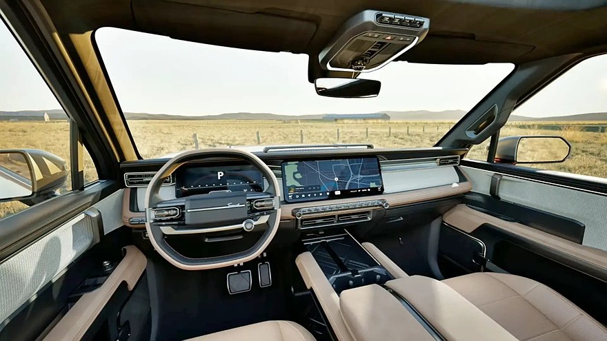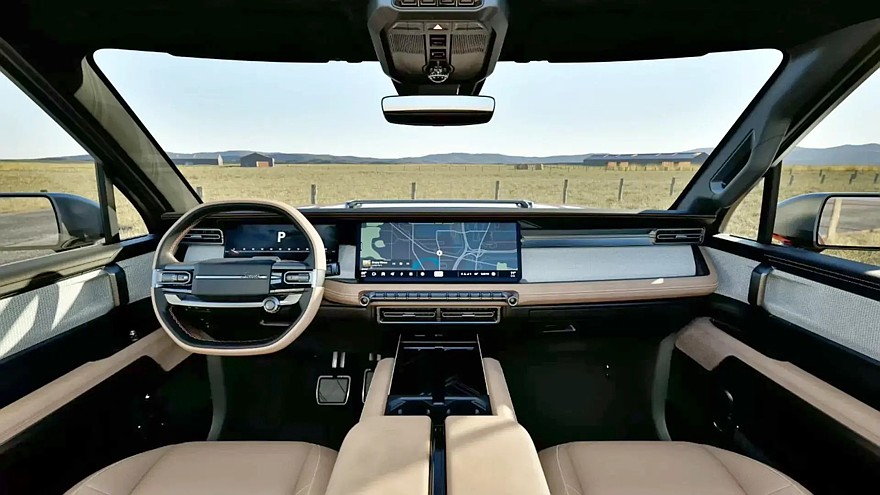 Интерьеры Scout Traveler и Scout Terra по сути одинаковы. Пока не ясно, есть ли у внедорожника третий ряд. Спереди можно установить два отдельных сиденья или классический американский трехместный диван, то есть пикап может взять на борт до шести человек. Двухспицевый руль немного приплюснут. На передней панели установлены крупные экраны приборов и мультимедиа, программное обеспечение можно обновлять «по воздуху». Сенсорные кнопки есть только на экране мультимедиа, все остальные кнопки настоящие, крупные, выполненные в нарочито старомодном стиле. Кнопки управления настройками вождения расположены на потолочной консоли, там же расположен стильный полусферический компас. В качестве опции для крыши внедорожника доступна большая складная центральная тканевая секция.