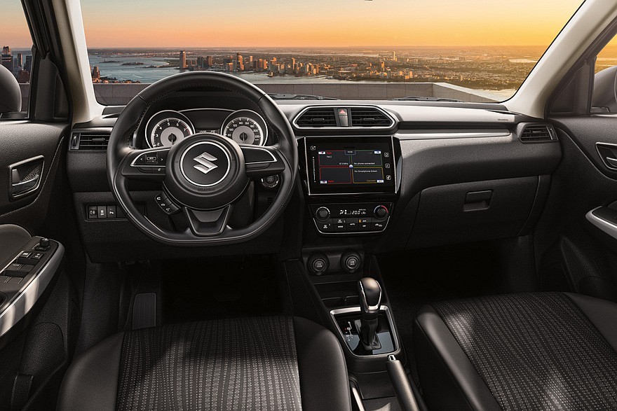 Шпионам также удалось заглянуть в салон нового Dzire — внутри седан будет повторять хэтчбек. Четырехдверная модель получит аналогичную переднюю панель, мультимедийную систему с «плавающим» планшетом и блок управления климатом.