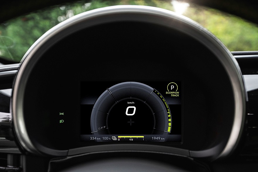 Два других режима движения — Turismo и Scorpion Street, в которых принудительно ограничиваются мощность электродвигателя и максимальная скорость. Максимальная скорость обеих версий в режиме Scorpion Track составляет 200 км/ч, версия Turismo набирает первую «сотню» за 6,24 с, версия Scorpionissima — за 5,85 с. Емкость аккумулятора — 54 кВт·ч, максимальный запас хода на одной зарядке для версии Turismo — 334 км по циклу WLTP, для версии Scorpionissima — 321 км.