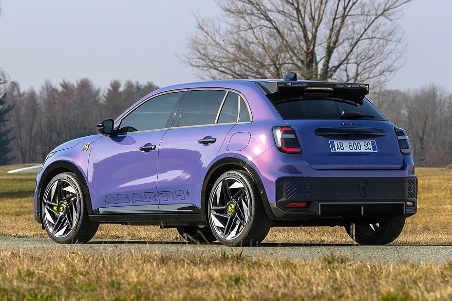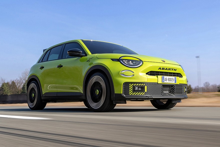 Abarth 600e имеет один электродвигатель на передней оси и, соответственно, передний привод, а дифференциал повышенного трения Torsen помогает контролировать тягу. Максимальная мощность электродвигателя в версии Turismo составляет 240 л.с. и 345 Нм, а в версии Scorpionissima (синий автомобиль на фотографиях) — 280 л.с. и 345 Нм. Максимальная мощность в обоих случаях доступна только в самом хардкорном режиме вождения Scorpion Track.