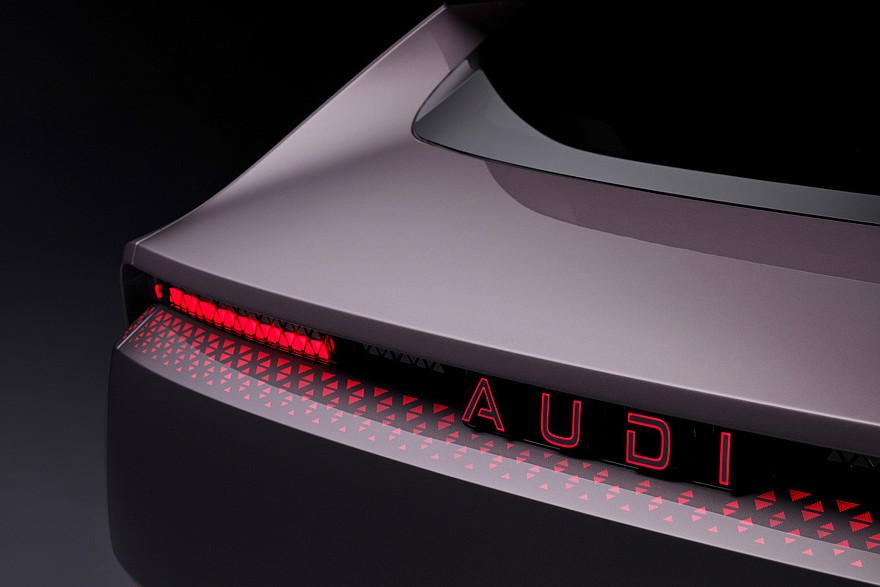 Из особенностей внешнего дизайна шоу-кара можно отметить узкие фары, светодиодные рамки спереди и сзади, камеры вместо традиционных зеркал и безрамные двери с выдвижными ручками. На стеклянной крыше установили лидар, а также AUDI E получила большие колеса.