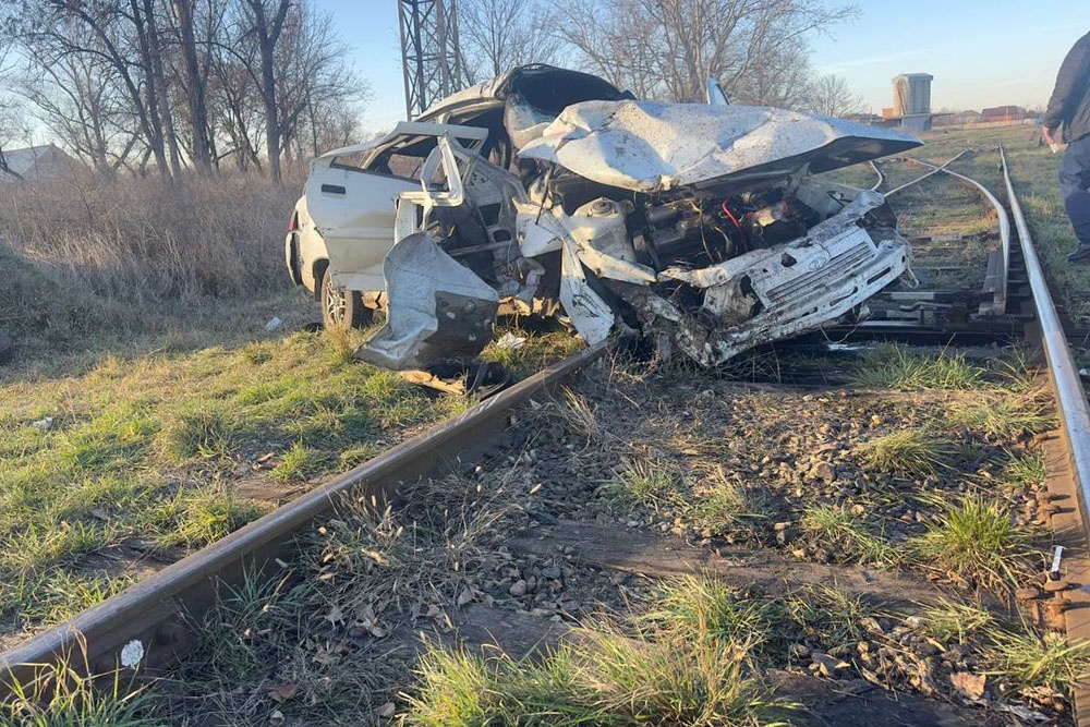 Машинист поезда, заметив автомобиль на переезде, резко затормозил. Однако из-за небольшого расстояния между автомобилем и поездом избежать столкновения не удалось.