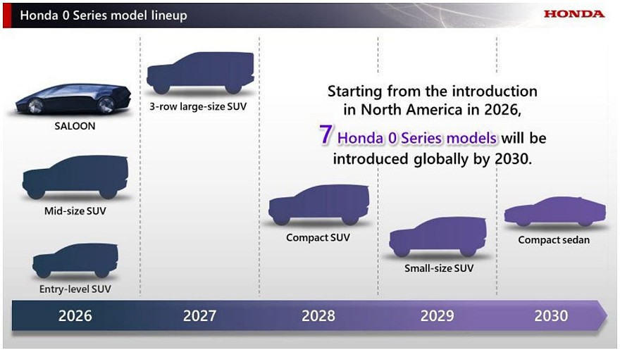 По плану Honda, в 2026 году Новая серия электромобилей бренда должна включать кроссовер среднего размера и внедорожник начального уровня. В 2027 году линейка пополнится большим трехрядным внедорожником, который сможет составить конкуренцию Kia EV9 за покупателей, на 2028 год запланирован выход компактного кроссовера, в 2029 году ожидается еще один небольшой внедорожник, а в 2030 году — компактный седан.