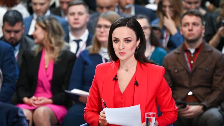 На фото: модератор прямой линии с президентом Александра Суворова.