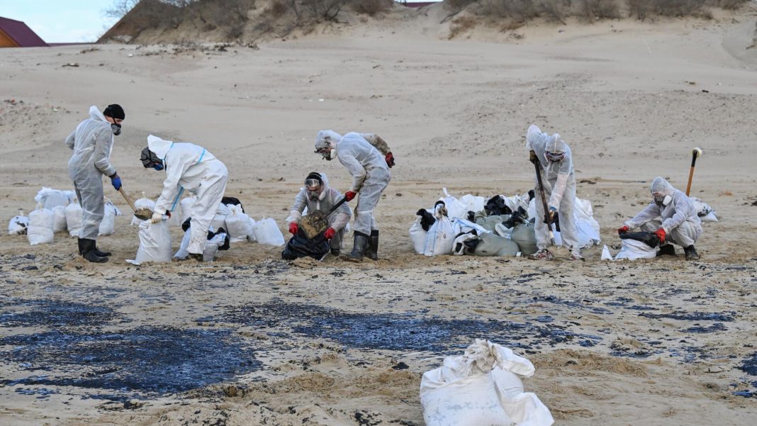 60~br />В среду на Кубани введен режим чрезвычайной ситуации регионального масштаба из-за продолжающегося сброса нефтепродуктов на берега Анапы и Темрюкского района. Спасатели и волонтеры собирают загрязненный грунт на берегу, специалисты изымают из акватории нефтеводяную смесь и обрабатывают ее сорбентом. В регионе действует несколько центров по спасению птиц, пострадавших от мазута.