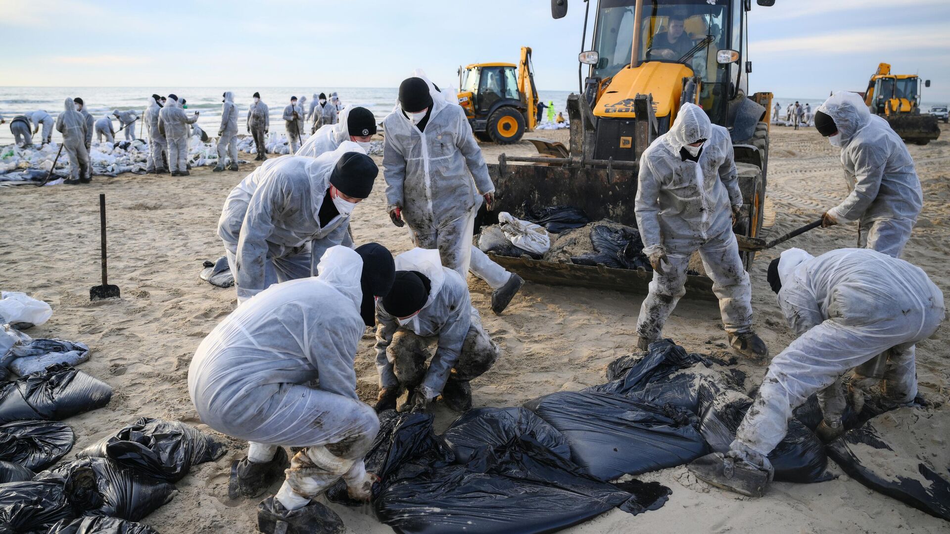 В среду на Кубани ввели режим чрезвычайной ситуации регионального масштаба из-за продолжающегося сброса нефтепродуктов на берега Анапы и Темрюкского района. В четверг Главное управление МЧС Кубани сообщило о введении чрезвычайной ситуации федерального уровня в связи с разливом нефтепродуктов в результате крушения танкеров в районе Керченского пролива. Спасатели и волонтеры собирают загрязненный грунт на берегу, специалисты убирают нефтеводяную смесь с акватории и обрабатывают ее сорбентом.