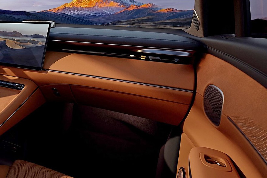Что касается экстерьера, то он выполнен в новом стиле. Главной особенностью является двухъярусная головная оптика. Ее верхняя часть состоит из платы, которая соединена светящейся пластиной. Эти панели способны отображать изображения и анимацию. Другие особенности дизайна экстерьера включают арочные задние фонари, выдвижные дверные ручки и силуэт в стиле Range Rover. Модель также имеет лидар.