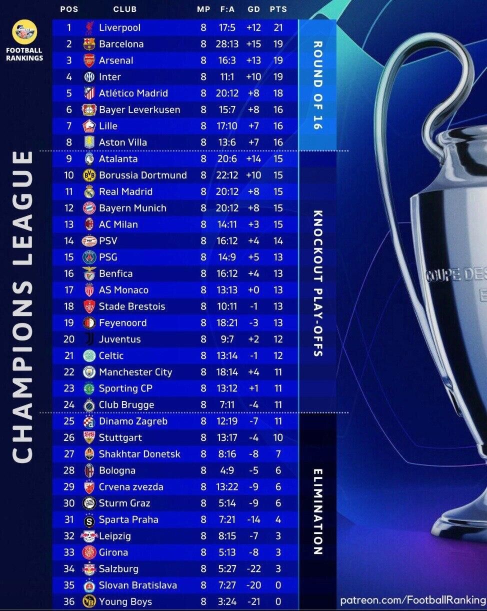 - ВЫШЛИ В 1/8 ФИНАЛА: Ливерпуль, Барселона, Арсенал, Интер, Атлетико, Байер, Лилль, Астон Вилла.