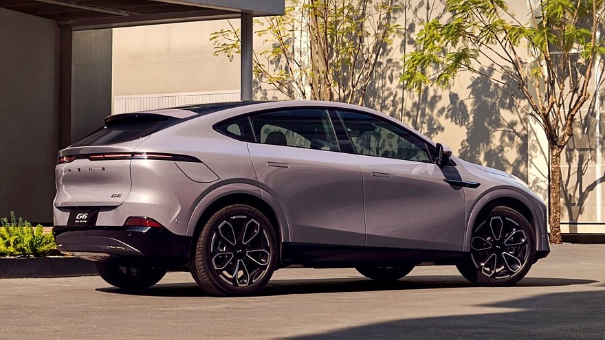 В ходе рестайлинга Xpeng G6 получил модную нынче цельную световую полосу на передке, которая прежде была разрезана посередине эмблемой, у обновлённого кроссовера эмблема сместилась вверх на капот. В световую полосу помимо матричных фар интегрирован индикатор работы автопилота третьего уровня AI Turing. Корма обзавелась вторым спойлером типа утиный хвостик на багажной двери в дополнение к основному верхнему спойлеру. Обновлён дизайн колёсных дисков — 18- либо 20-дюймовых. Изменения в дизайне увеличили габаритную длину кроссовера с 4753 до 4758 мм, остальные ключевые размеры прежние: ширина — 1920 мм, высота — 1650 мм, колёсная база — 2890 мм.