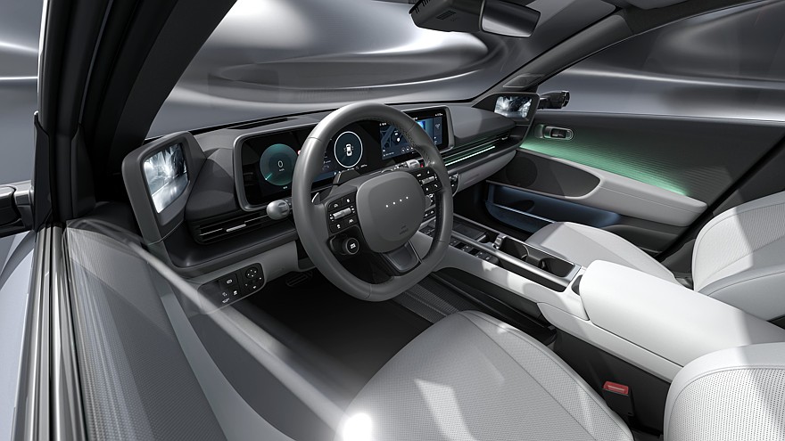 Дизайн интерьера Hyundai Ioniq 6 обновлён точечно: появился трёхспицевый руль вместо двухспицевого, блок микроклимата стал крупнее и получил физические клавиши вместо сенсорных, центральный тоннель перекомпонован так, чтобы водителю было удобнее пользоваться расположенными на нём клавишами, отделочные материалы стали более дорогими на вид и на ощупь.