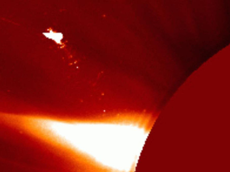 Огромная «птица», напоминающая мифологическую птицу Феникс, «воспарила» над Солнцем 24 мая в 13:00 по московскому времени на расстоянии примерно 2 миллионов километров от светила. Некий светящийся объект с распростертыми «крыльями» попал на снимок американского коронографа LASCO, и ученые оказались в затруднительном положении, когда их попросили объяснить, что представляет собой «птица» на самом деле. А лаборатория солнечной астрономии ИКИ РАН даже призвала всех специалистов поделиться своими версиями.