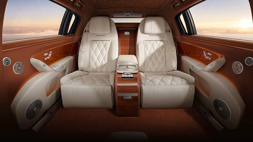 Для пассажиров второго ряда предусмотрен холодильник, способный поддерживать заданную температура в диапазоне от -6 до +50 °C. В потолок вмонтирован опускающийся киноэкран для задних пассажиров, он же выполняет роль перегородки между передней (водительской) и задней частями салона. Объём багажника в зависимости от модификации составляет 438 либо 445 л, у электрических версий спереди есть дополнительный багажник объёмом 62 л.
