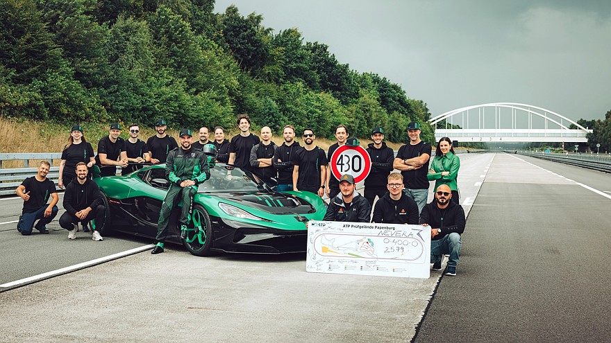 Хорватская компания Rimac продолжает штамповать мировые рекорды в сегменте серийных дорожных автомобилей благодаря появлению модернизированного электрического суперкара Nevera R с невероятно мощной четырёхмоторной силовой установкой (2107 л.с.). На днях Rimac Nevera R провёл серию заездов на испытательном полигоне ATP (Automotive Testing Papenburg) в Германии и установил сразу 23 рекорда разгонной и тормозной динамики, а также новый рекорд максимальной скорости.