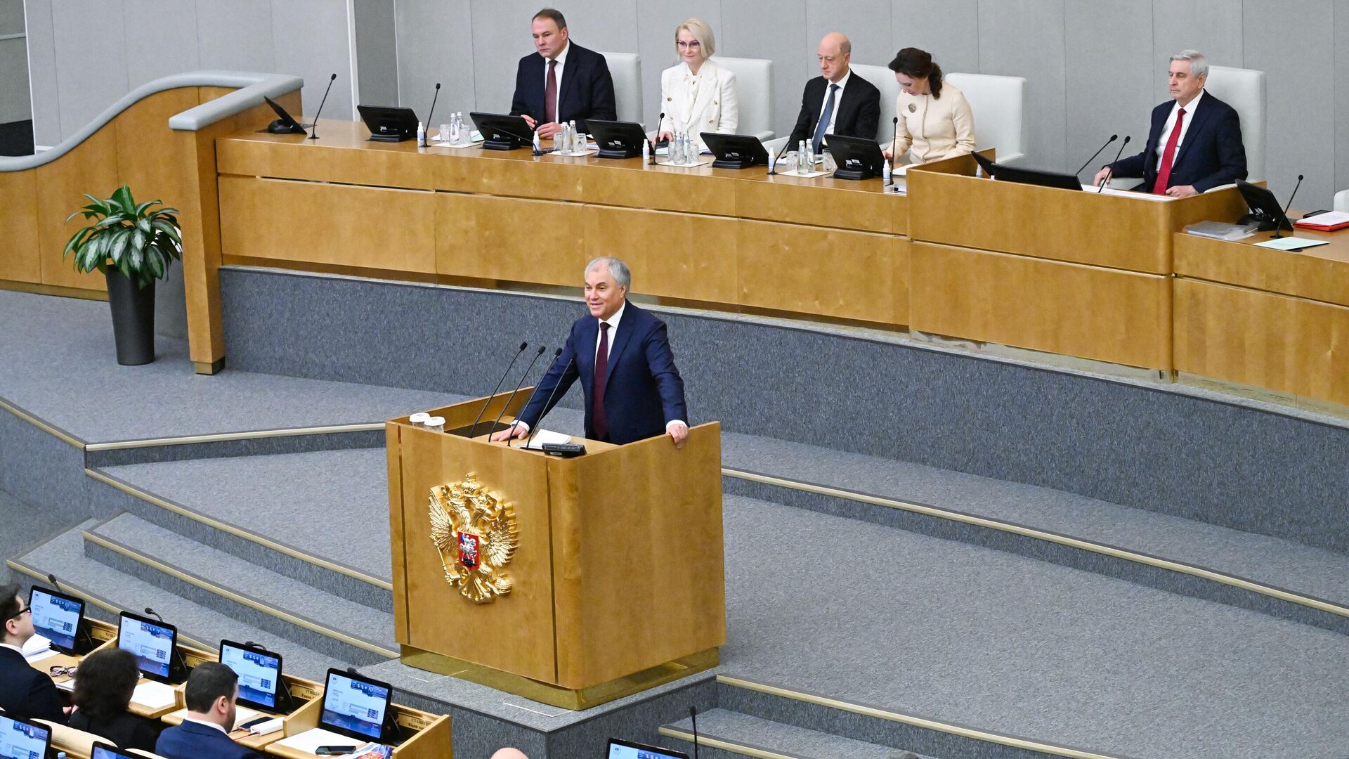 «Информирую вас, мы вышли с вами на 97% реализации послания Федеральному собранию президента, с принятием предыдущих трёх законов. Нам надо постараться за оставшееся время выйти на стопроцентное обеспечения реализации послания. От этого многое зависит», — сказал Володин в ходе пленарного заседания.