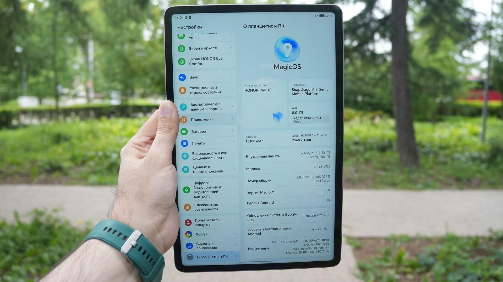 Но это сухие характеристики – на деле у HONOR Pad 10 яркий дисплей с сочными цветами, который не утомляет пользователя мерцанием, свойственным модным OLED-экранам. В целом, HONOR уделили много внимания комфортному использованию дисплея. Так, планшет прошел двойную сертификацию TÜV Rheinland (аудиторской компании «Тью Рейлэнд»), подтверждающую снижение уровня синего света и отсутствие мерцания. Есть тут технология «Динамическая яркость», которая имитирует естественные изменения освещения, снижая напряжение и усталость глаз. И даже ИИ нашлось место в обеспечении комфорта пользователя — опция «Комфорт при расфокусировка с AI» имитирует эффект дефокусных линз, снижая нагрузку на глаза при долговременном использовании.