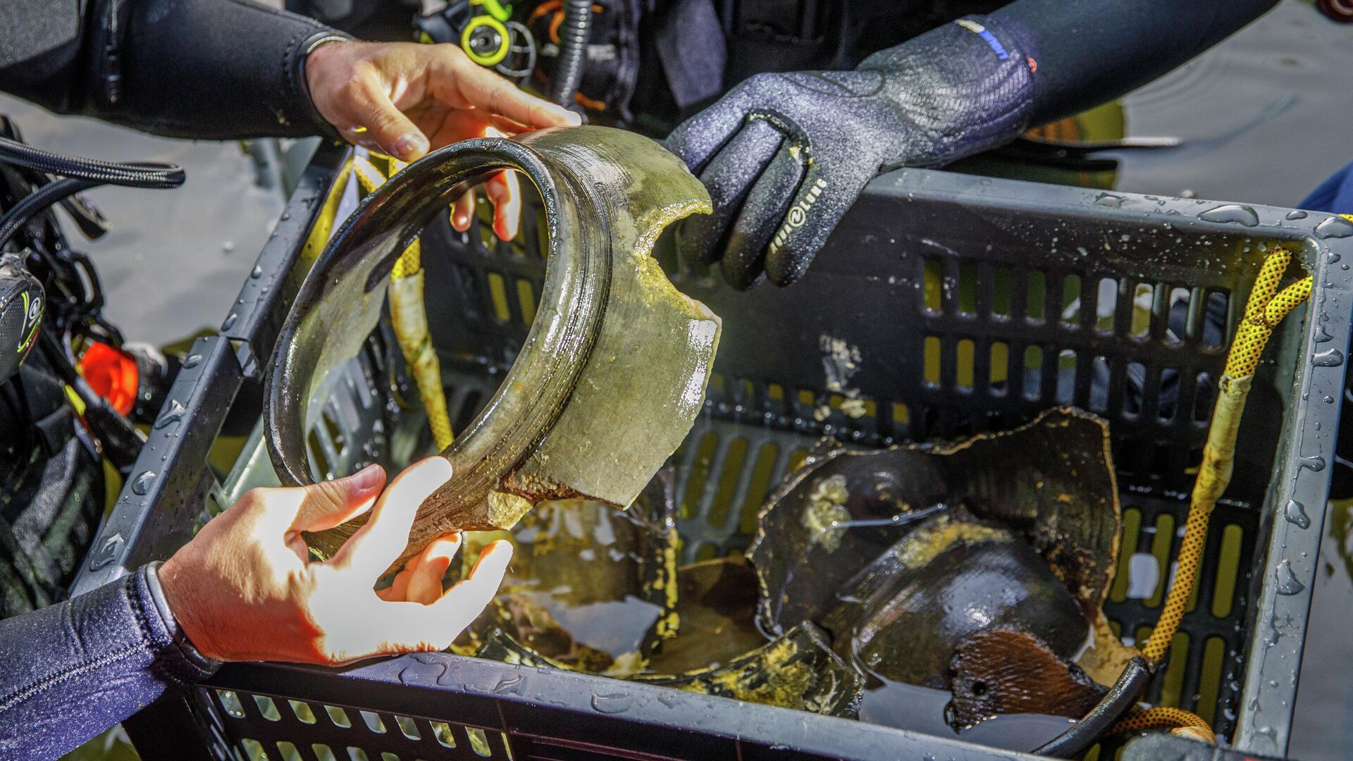 "Горшки, керамика и мелкие предметы попадаются на дне реки в этом месте рядом с поселениями. Также удалось обнаружить несколько старинных монет. Вижу такое впервые, наверняка это очень редкие артефакты, которые мы передадим специалистам для изучения", — сообщил дайвер клуба "Диво" Алексей Петрыкин.
