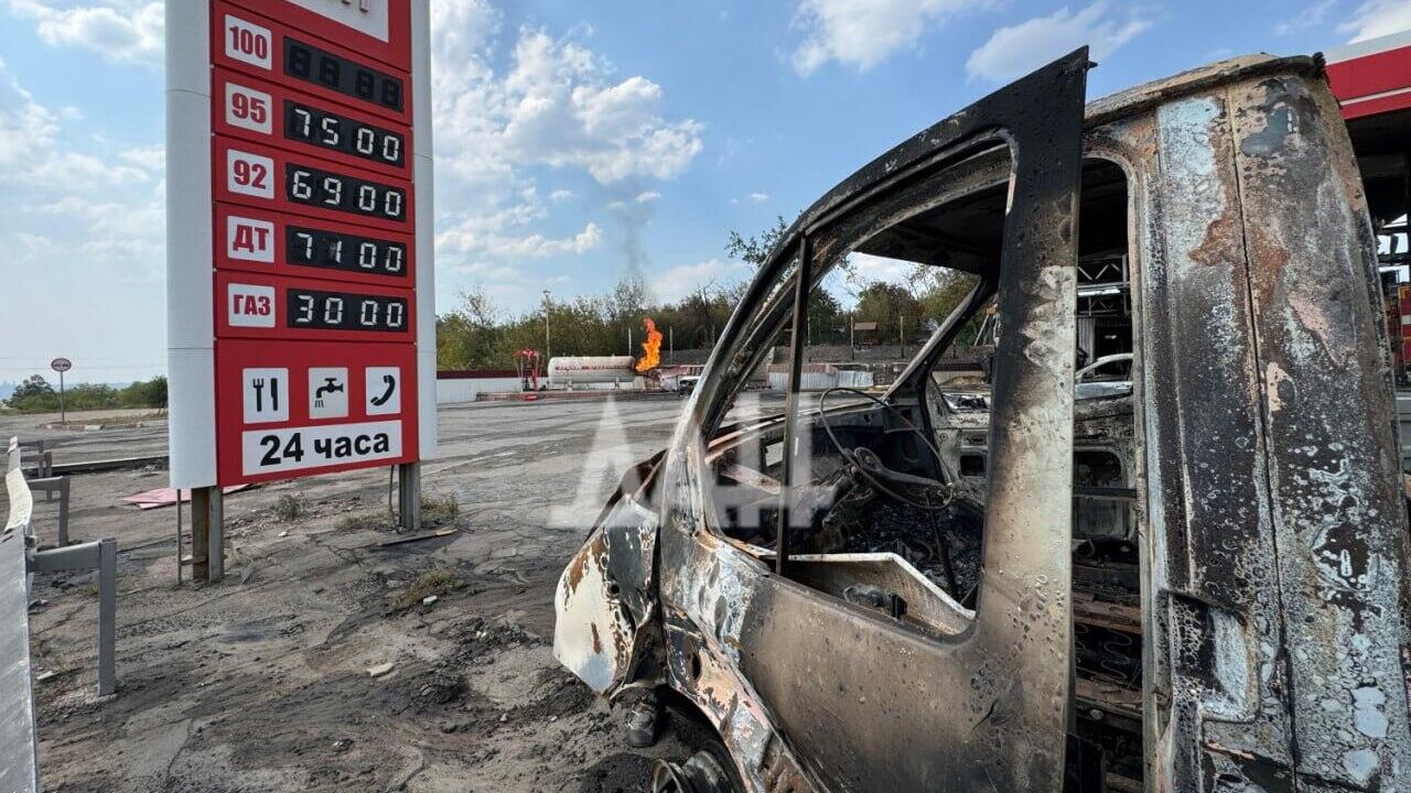 Атака дрона пришлась возле цистерны с газом, произошел сильный взрыв. В результате было уничтожено по меньшей мере три автомобиля, выгорело административное здание и заправочные колонки.