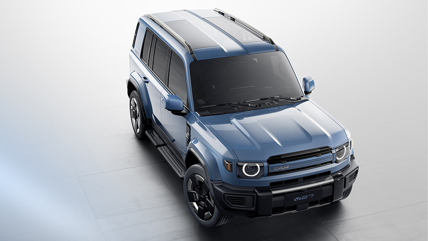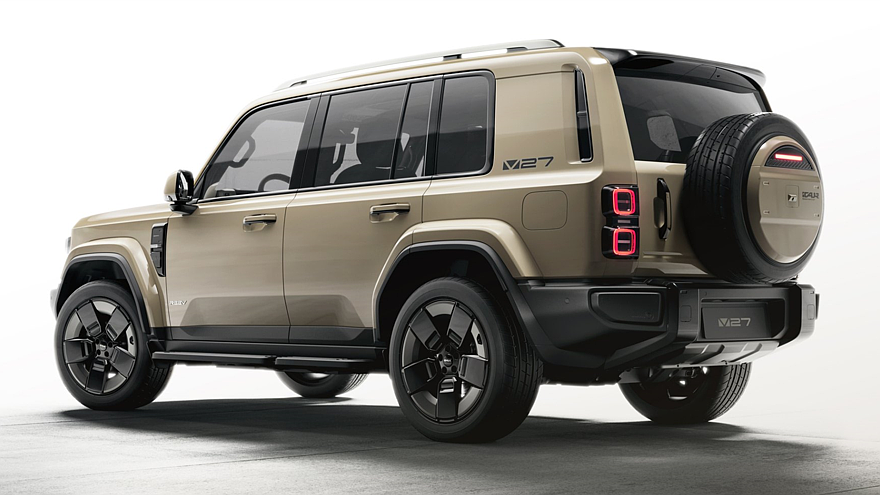 Головная оптика оформлена в стиле Land Rover Defender. На крыше можно увидеть полноценные рейлинги и две продольные стеклянные секции, профиль украшают двухцветные колёсные диски, подножки, обычные дверные ручки, а также большие наружные зеркала на отдельных ножках. Ещё у iCAUR V27 фонари оформлены в виде пары сдвоенных квадратов, расположенных вертикально по бокам от распашной багажной двери.