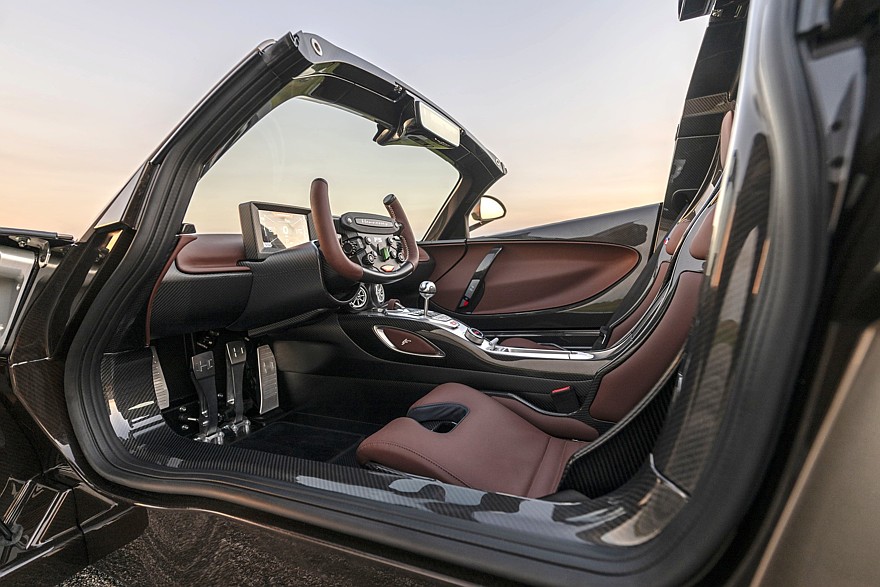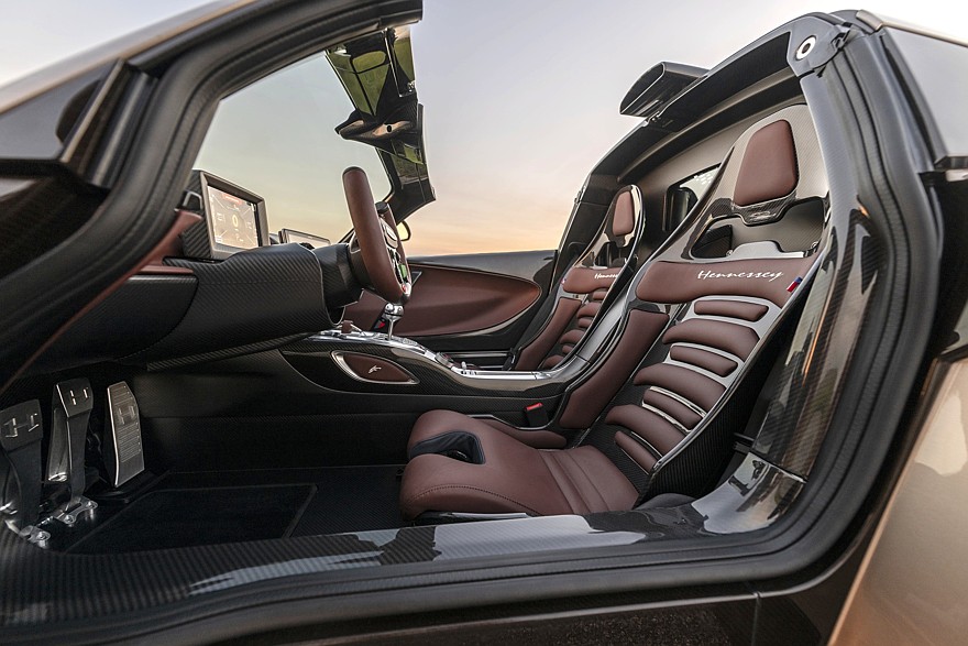 Уникальность Revolution LF сводится к выбранной заказчиком кофейно-молочной цветовой гамме (тонировку цветом Coco Brown получили в том числе углеродные волокна кузовных панелей) и сочетанию 6-ступенчатой МКП с модернизированным двигателем V8 Fury, являющимся частью пакета Evolution. Более производительные турбокомпрессоры и форсунки, новые поршни и новые головки блока позволили увеличить отдачу до 2059 л.с. при 8000 об/мин и 1959 Нм при 5000 об/мин, но для этого нужно лить в бак биоэтанол Е85. Обновлённый двигатель позволяет суперкару разогнаться с места до 200 миль/ч (322 км/ч) за 10,3 с, но это с 7-ступенчатым «роботом», а Луи Флори на своём трёхпедальном экземпляре будет достигать этой скорости чуть дольше.