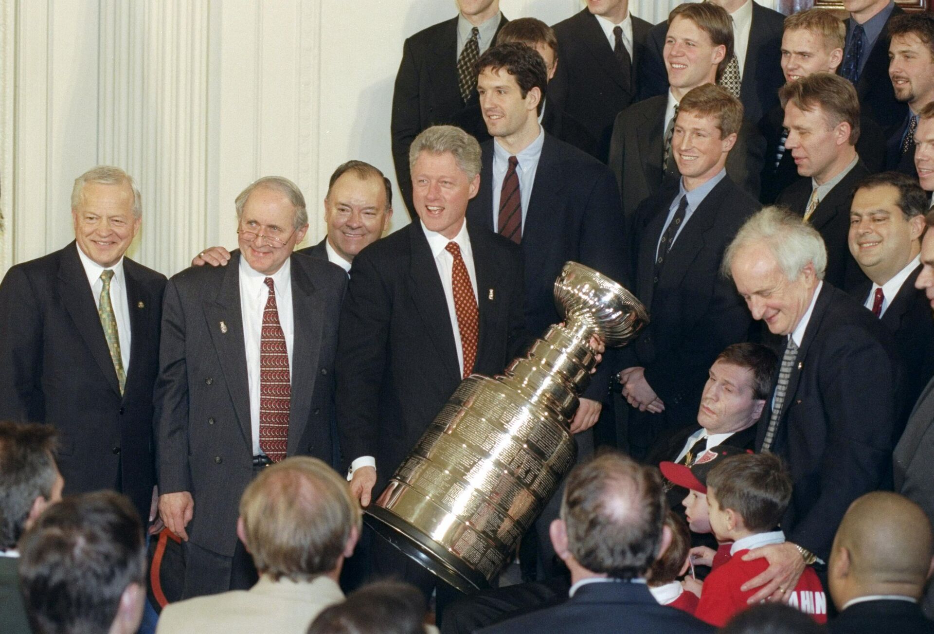 Но перед чемпионством в том же 1998-м Константинов стал автором еще одной забавной истории. В январе того года хоккеистов «Детройта» принимал в Белом доме тогдашний президент США Билл Клинтон.