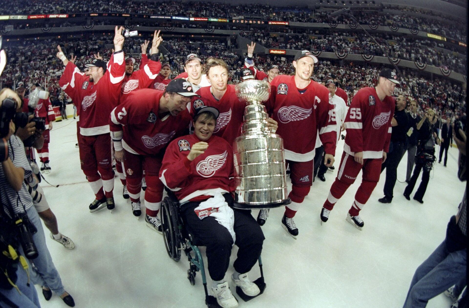 Всем ведь известна красивая история, как в 1998 году, когда «Детройт» второй раз подряд выиграл Кубок Стэнли, Константинов на инвалидном кресле выехал на ледовую площадку и сделал круг почета с трофеем в руках. Его фамилия, кстати, выгравирована на Кубке Стэнли, хотя сам россиянин по понятным причинам участия в сезоне-1997/98 не принимал.