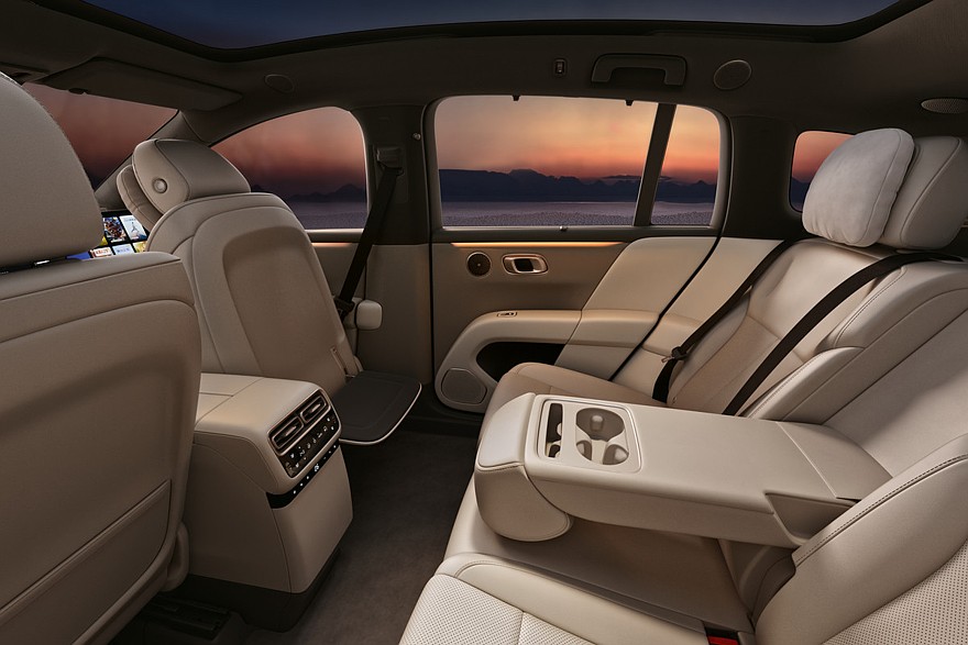 В торец центрального тоннеля встроены сенсорная панель управления и выдвижной бокс с функциями подогрева и охлаждения. Собственная фишка Li i6, которой нет у Li i8, — интегрированная в спинку правого переднего кресла откидная подставка для ног. Ну и, судя по всему, младший кроссовер будет доступен только в пятиместном исполнении, тогда как Li i8 предложен с шестиместным салоном.