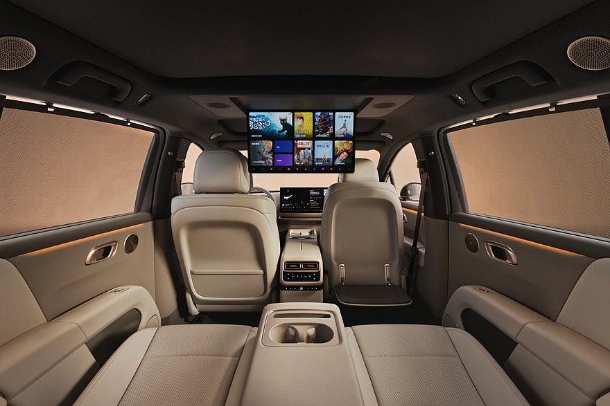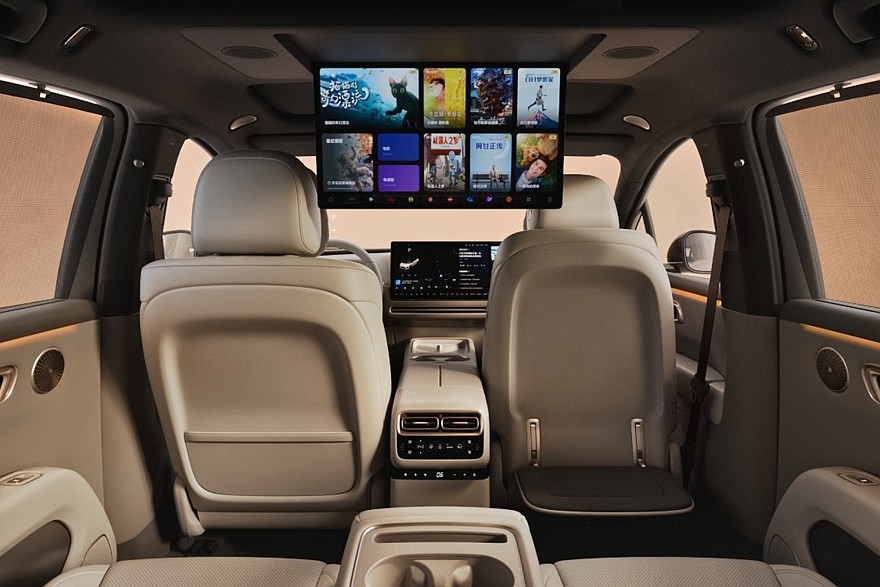 Внутри «шестерка» тоже в целом повторяет более крупный Li i8, как, впрочем, и остальные актуальные модели марки. На передней панели установлен сдвоенный экран мультимедиа. Отдельной приборки нет – ее функции возложены на проекционный дисплей. Для задних пассажиров предусмотрен свой крупный экран – он крепится к потолку. Паркетник с «кинотеатром» имеет две раздельные стеклянные секции в крыше, у машины без него – крыша полностью стеклянная.