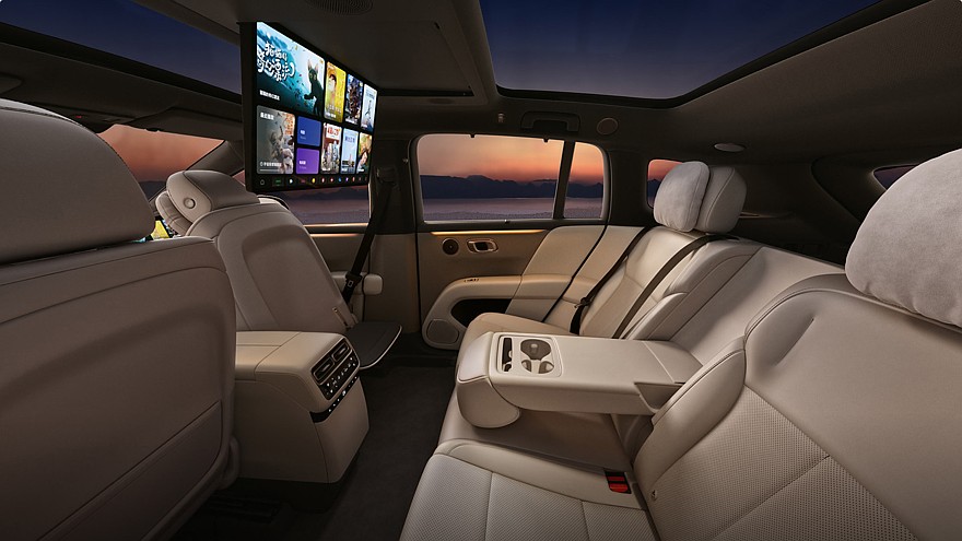 Для пассажиров второго ряда в топ-версии Li i6 предусмотрен отдельный монитор, который крепится к потолку (у исполнений без него крыша полностью стеклянная), а также дополнительная сенсорная панель управления и выдвижной бокс объёмом 8,8 литра с функциями подогрева и охлаждения. Кроме того, в спинку правого переднего кресла интегрирована откидная подставка для ног пассажира, расположившегося сзади.