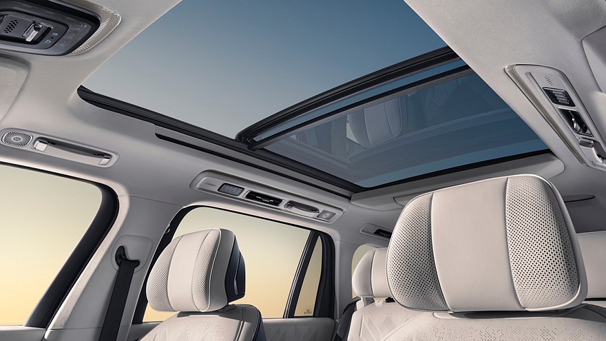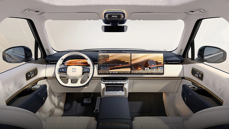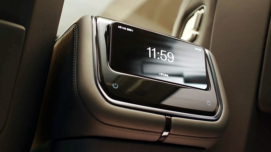 На передней панели салона установлены овальный 13-дюймовый приборный экран и большое табло, состоящее из двух 16-дюймовых экранов. В распоряжении водителя есть ещё 47-дюймовый проекционный экран дополненной реальности на лобовом стекле. Подсказки вдобавок могут проецировать прямо на дорогу фары автомобиля. Встроенные в кузов многочисленные органы искусственного зрения обеспечивают работу различных электронных ассистентов водителя, заявлен даже автопилот третьего уровня, но автопилоты такого уровня в Китае пока не легализованы — разрешён максимум второй. Объём багажника со всеми задействованными местами составляет 470 л, со сложенными креслами первого и второго рядов — 2148 л.