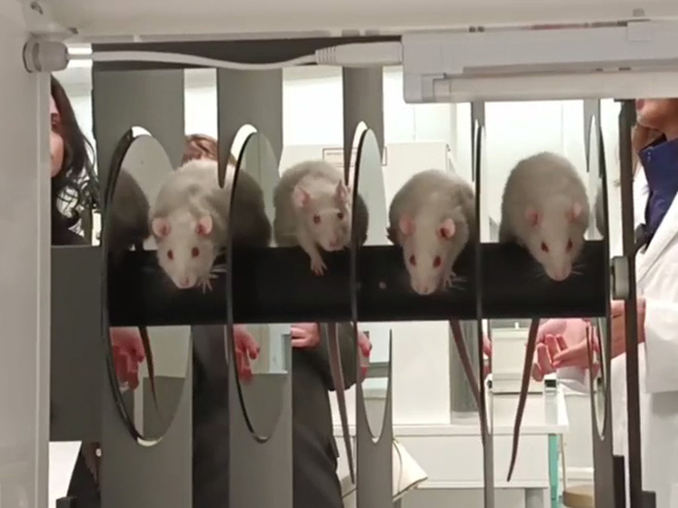 Гульнара Гайсина демонстрирует нам еще один эксперимент, при помощи которого оценивается нейротоксичность новых веществ. Четырех взрослых крыс сажают на вращающийся стержень, на котором, чтобы удержаться, им приходится постоянно прилагать усилия, перебирая лапками. У тех, кто быстро сходит с «дистанции», фармакологи фиксируют двигательные нарушения, возможно, вызванные новым веществом.