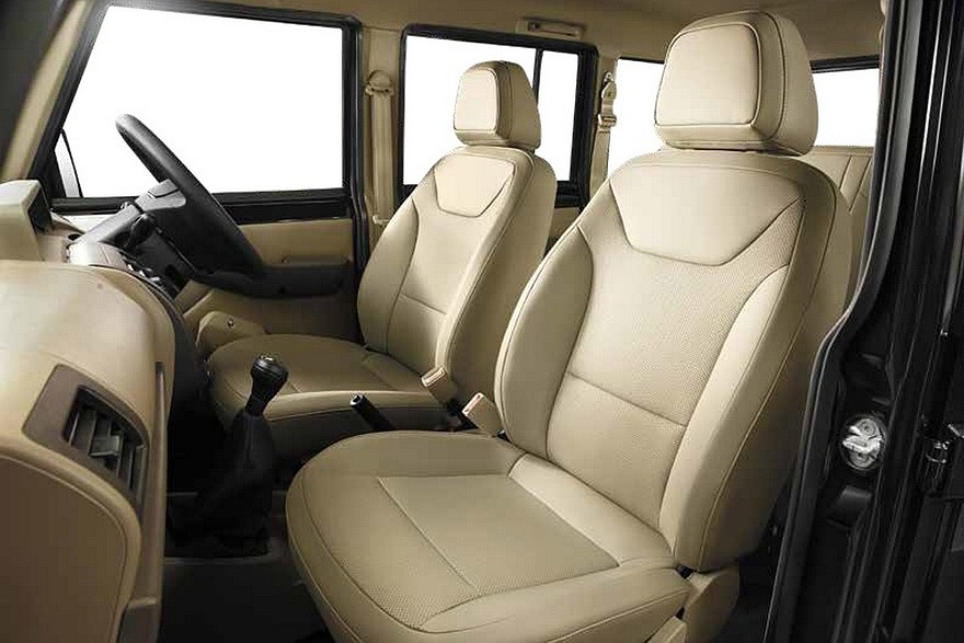 Bolero впервые обрел мультимедийную систему – начиная со второй по старшинству комплектации внедорожник имеет тачскрин диагональю 7 дюймов. Но ни Android Auto, ни Apple CarPlay система не поддерживает. Модели также отрядили USB-разъем Type-C, в дверях появились держатели для бутылок. Как и прежде, Mahindra Bolero имеет лишь две подушки безопасности, камеры заднего вида нет даже за доплату.