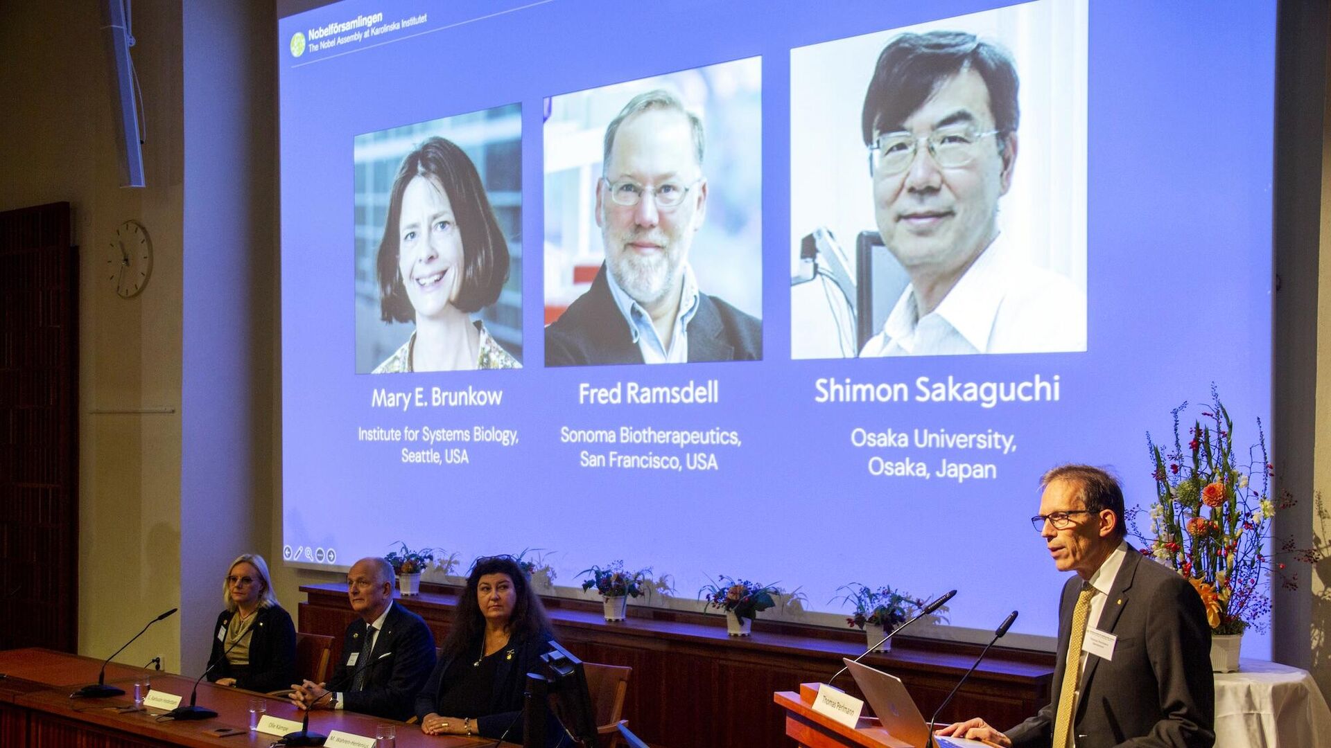 Мэри Брунков (1961) работает в Институте системной биологии в Сиэтле. Фред Рамсделл (1960) — научный руководитель компании Sonoma Biotherapeutics из Сан-Франциско. Шимон Сакагучи (1951) работает в Университете Осаки.