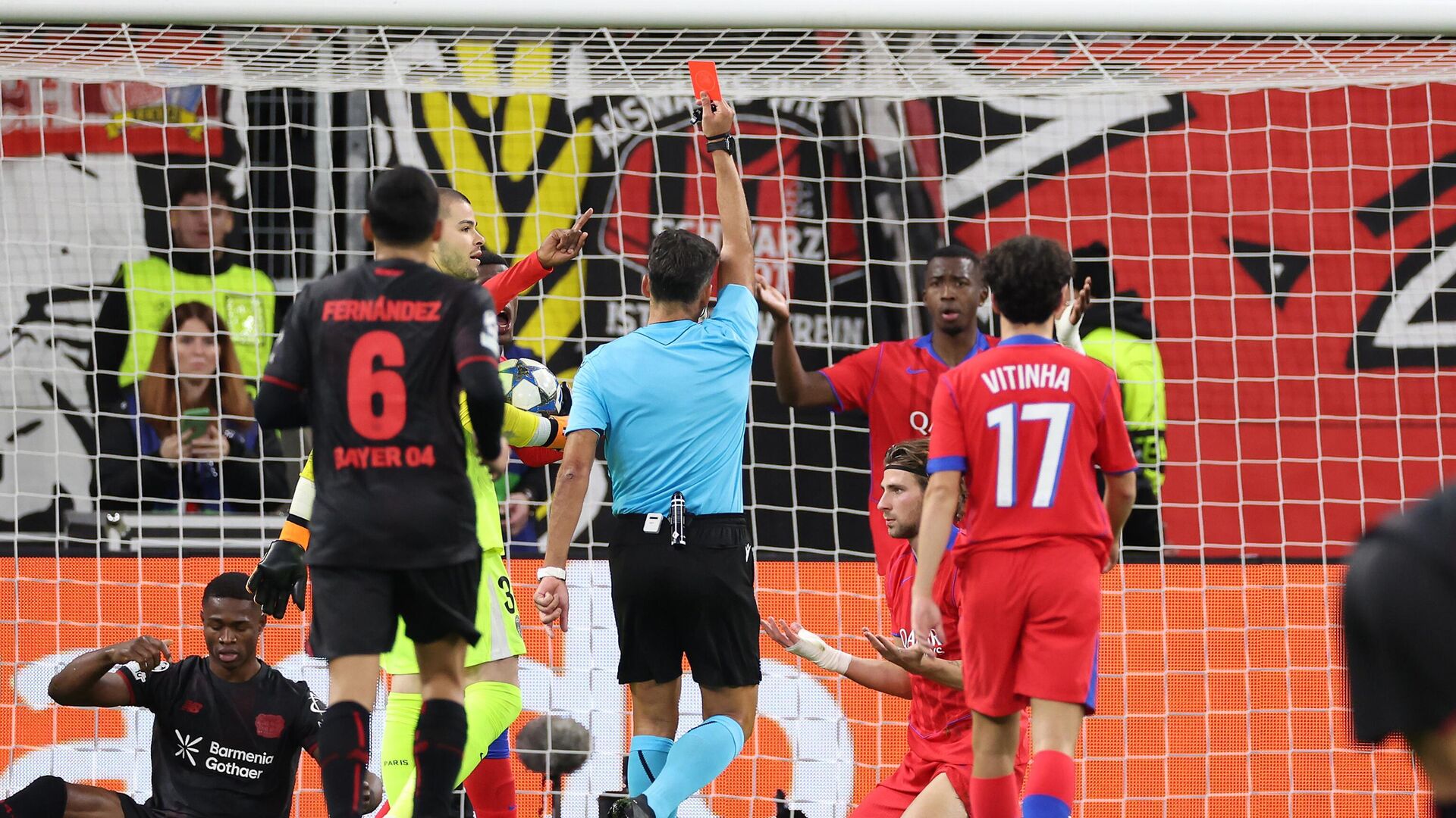 В матче против «Байера» Шевалье снова не блеснул. Пропустил один с пенальти и даже не прыгнул после дальнего удара, второй удар с точки не достал, но мяч угодил в штангу… Однако «ПСЖ» и без того справился с «аптекарями», набрав девять очков из девяти возможных. Первый тайм закончился со счетом 4:1 в пользу гостей и игрой «10 на 10» из-за двух красных карточек. Парижане быстро повели благодаря голу Вильяма Пачо, потом пропустили и словно проснулись. Три гола за семь минут в концовке первой половины встречи! Дезире Дуэ положил «двушку», еще один раз отличился Хвича Кварацхелия. После перерыва команды обменялись голами, у гостей отличился Нуну Мендеш. На этом чемпионы не успокоились и сделали счет 2:7 (не ушли с поля без гола обладатель «Золотого мяча» Усман Дембеле и Витинья), который остался неизменным. Благодаря этому триумфу «ПСЖ» стал первым клубом в истории еврокубков, забившим семь в выездном матче с командой Бундеслиги.