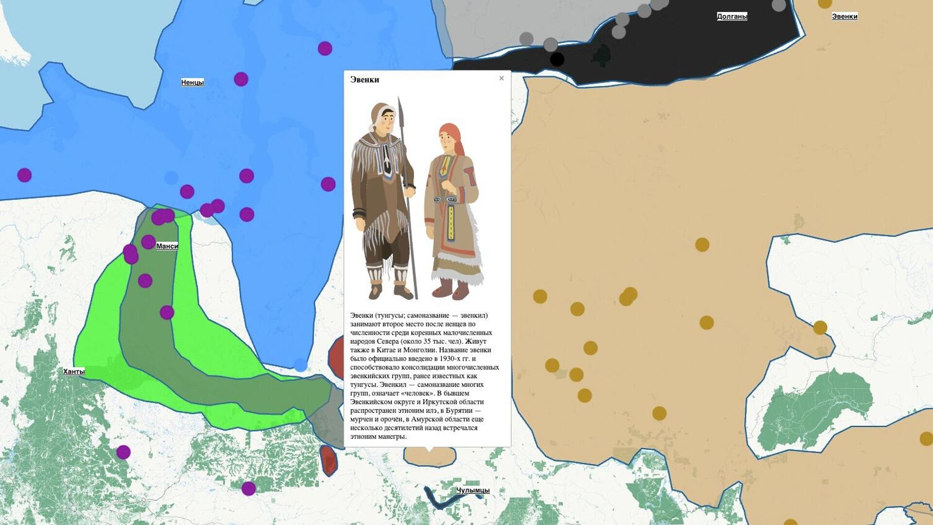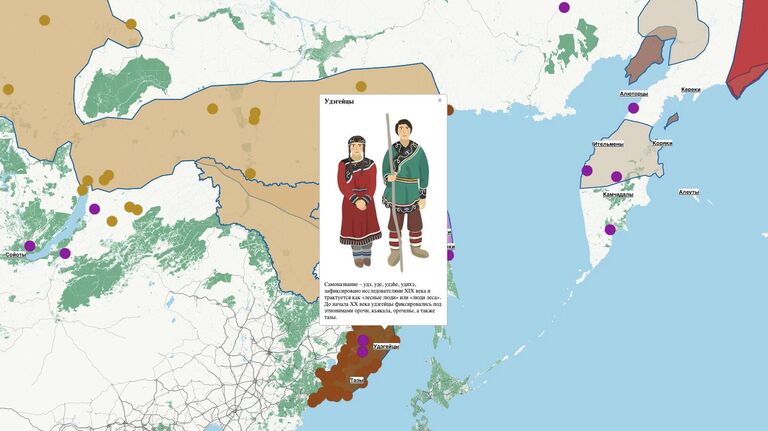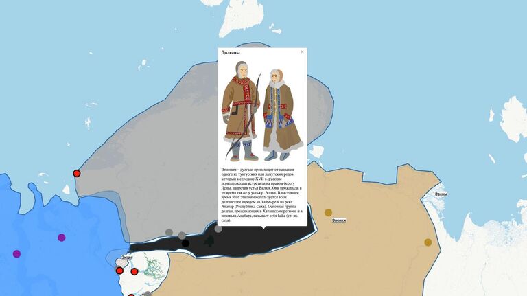 Кроме того, в «Интерактивном атласе» приведены подробные сведения о географии их проживания, информация об образе жизни, исторические справки и данные о современной социальной ситуации в регионах. Проект позволяет совершить виртуальные экскурсии по музейным экспозициям Амурской и Магаданской областей, Камчатского, Красноярского, Хабаровского краев, Чукотки и Сахалина.