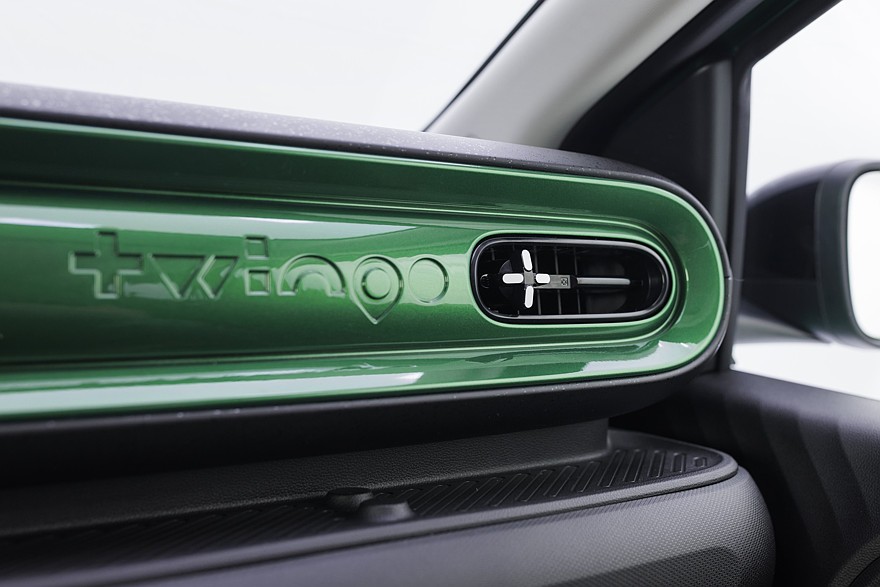 Разработкой нового Twingo занимался шанхайский технический центр Renault, именуемый ACDC, ему помогали местные, китайские партнёры — Launch Design (кузов), CATL (батарея) и Shanghai e-drive (силовой модуль). Задача была обеспечить максимально низкую себестоимость с учётом довольно дорогой европейской сборки. Батарея у Twingo дешёвенькая, литий-железо-фосфатная, с воздушным охлаждением и скромной ёмкостью 27,5 кВт·ч. Мощность зарядки переменным током — всего 6,6 кВт, за доплату её можно повысить до 11 кВт. Максимальная мощность зарядки постоянным током (тоже за доплату) — 50 кВт. Максимальный запас хода на одной зарядке — 263 км по циклу WLTP (на 18-дюймовых колёсах будет меньше).