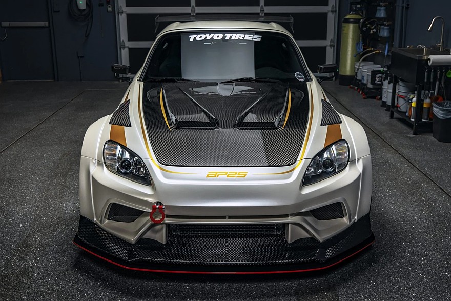 Новый весьма агрессивной образ Honda S2000 BP25 формируют тщательно подобранные друг к другу компоненты от разных производителей, в том числе углепластиковый widebody-обвес Varis Dark Panther, доработанная Bulletproof жёсткая крыша от Spoon и кастомные светодиодные фонари. На крышку багажника установлено огромное фиксированное антикрыло, а задний бампер ощетинился торчащими лезвиями диффузора.