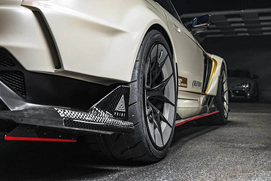 Фотографии салона ателье Bulletproof не приводит, но по спецификации на сайте ателье видно, что он тоже серьёзно переделан: установлены ковши Recaro и новый руль, в отделке очень много углепластика. В подвеске установлены спортивные амортизационные стойки Aragosta TS Spec с внешними резервуарами и куча новых компонентов от J’s Racing, Roberuta, Spoon и EVS. Колёса обуты в полуслики Toyo Proxes R888R размерности 295/30Z R19. Надёжное замедление обеспечивают мощные дисковые тормоза Brembo Pista с 6-поршневыми суппортами на передней ос и 4-поршневыми на задней.
