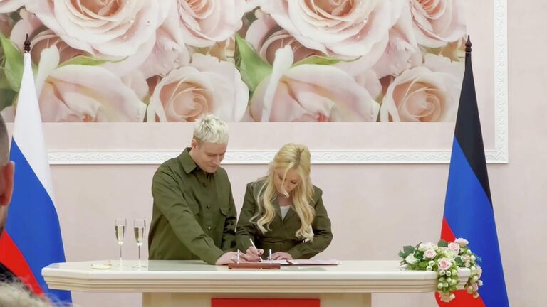 На кадрах, опубликованных в мессенджере артиста, видно, что пара выбрала необычные для росписи наряды в камуфляжном стиле, у Мизулиной в руках небольшой букет белых роз. Церемония прошла тихо и скромно, без большого числа гостей. Ее посетил глава ДНР Денис Пушилин.
